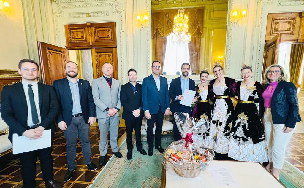 Nesta quarta-feira (31), o grupo esteve no Palácio Piratini convidando o governador Eduardo Leite para prestigiar a programação dos eventos, que ocorrem entre os dias 8 e 18 de junho no Parque de Eventos de Bento Gonçalves. A solenidade de abertura está marcada para a próxima quinta-feira (8), às 17h.